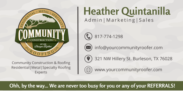 Community Construction is a family owned and operated company serving the Dallas/Fort Worth (DFW) Metroplex. Bert, the owner has been in the roofing industry since 2003. We specialize in residential and commercial roofing, outdoor living, fence installation, and deck work.